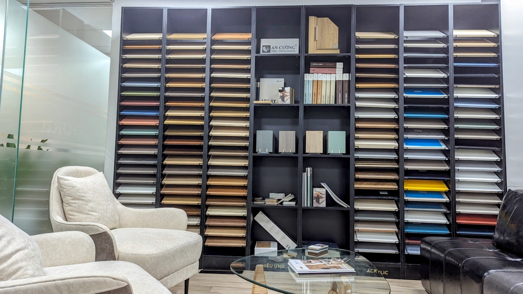 Gỗ công nghiệp được hoàn thiện với nhiều bề mặt và màu sắc khác nhau